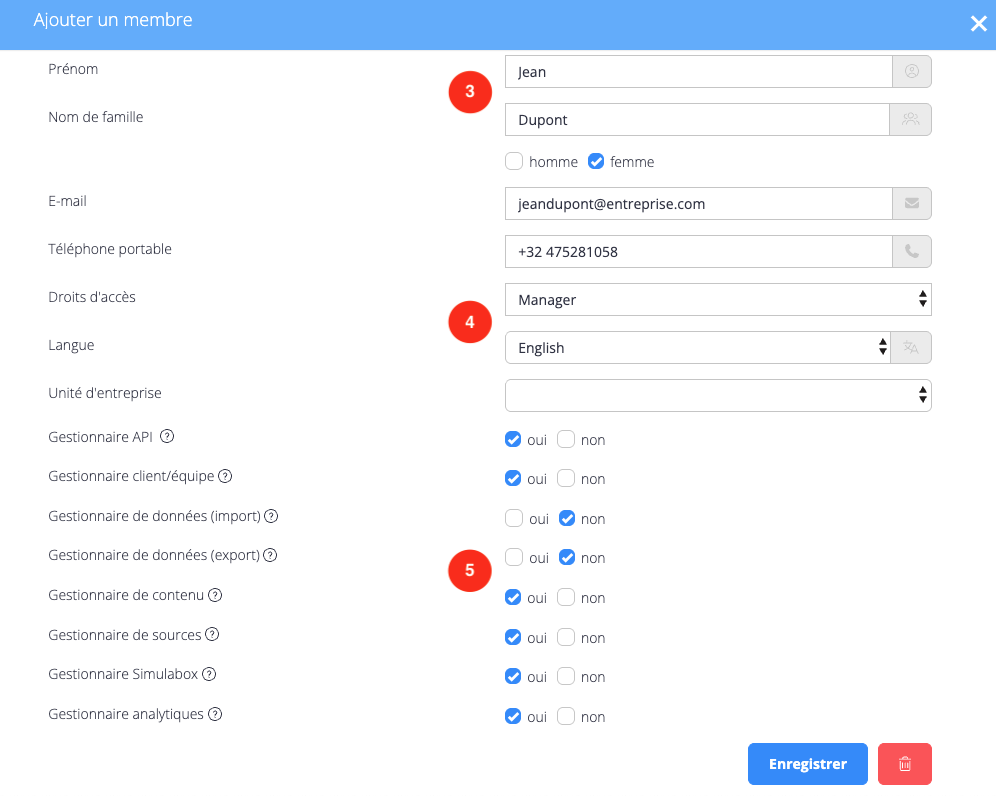 - (6) Enregistrez le nouveau membre. Il ou elle recevra alors un e-mail d'invitation à l'adresse e-mail que vous avez indiquée pour créer son compte.