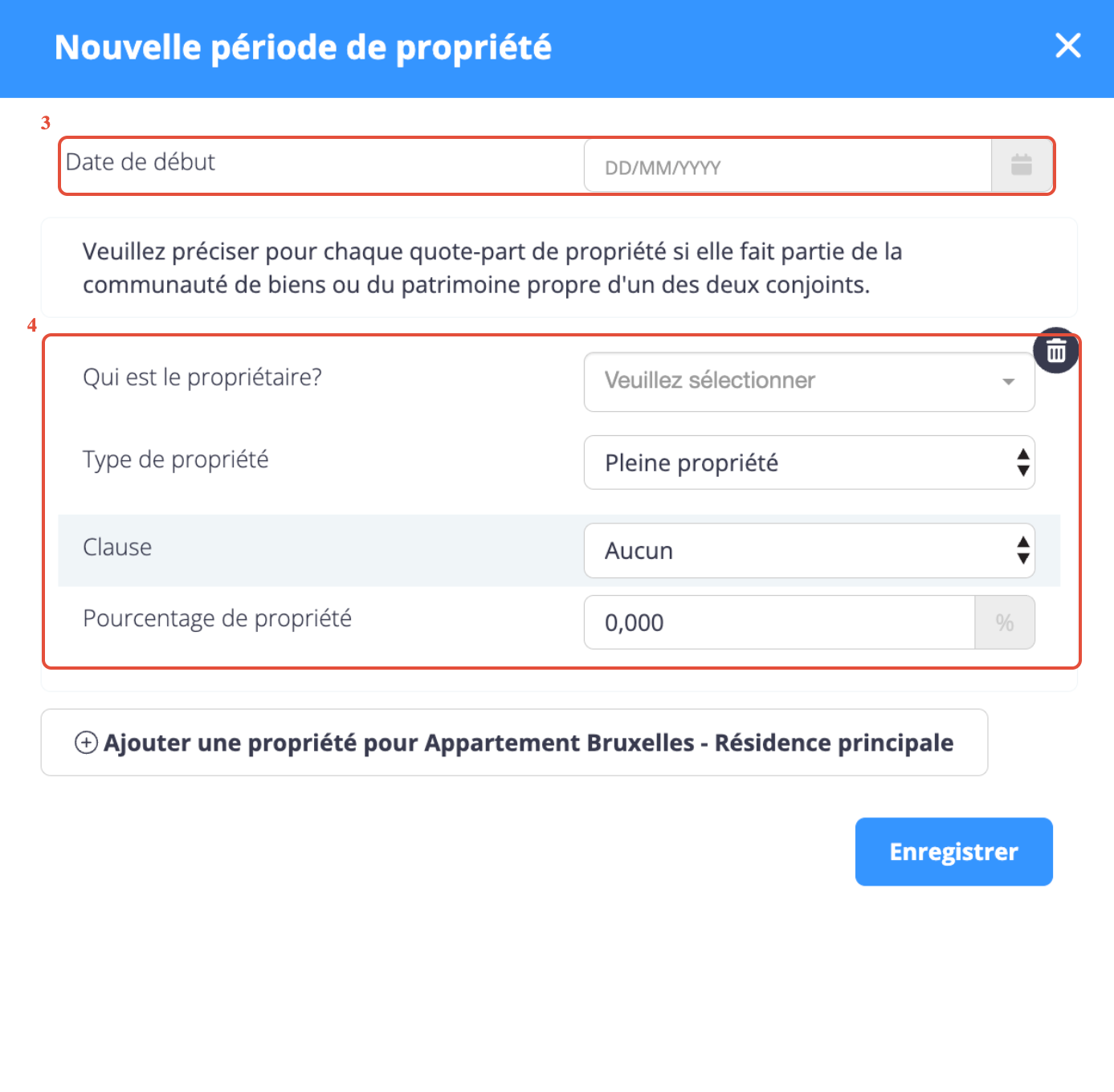 (2) Cliquez sur le bouton "Ajouter une propriété" afin d'ajouter un nouvel historique ou un nouveau changement de propriété.