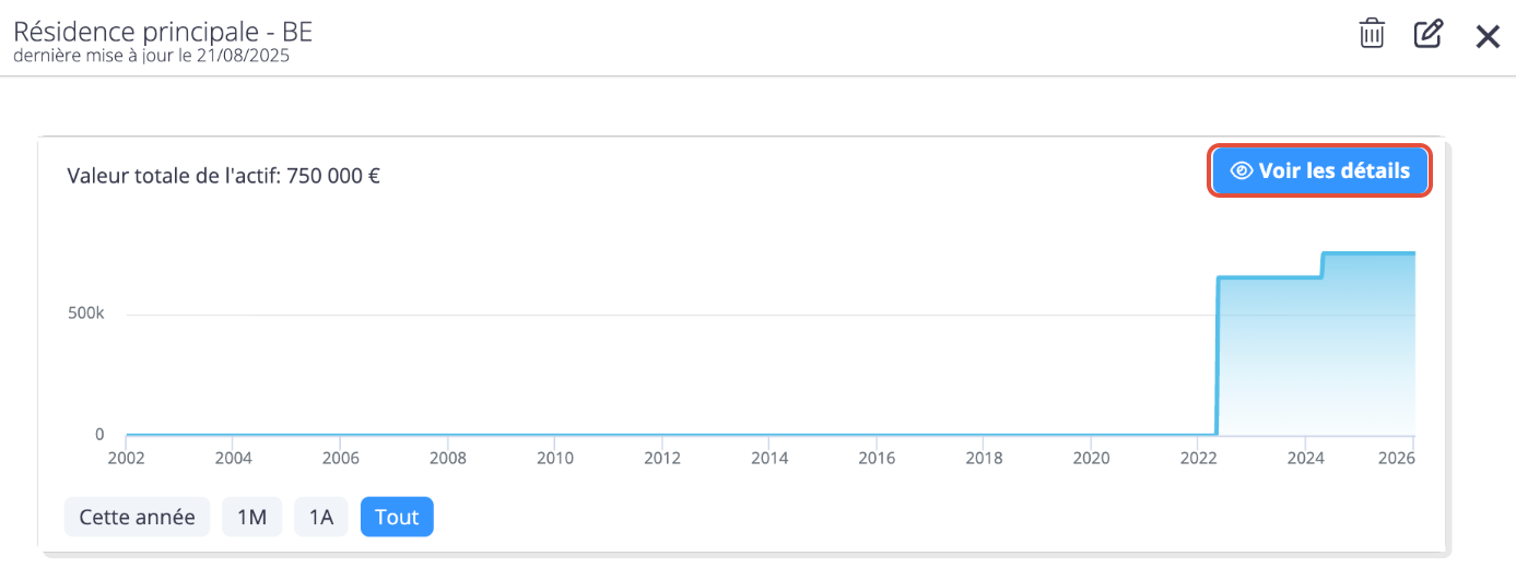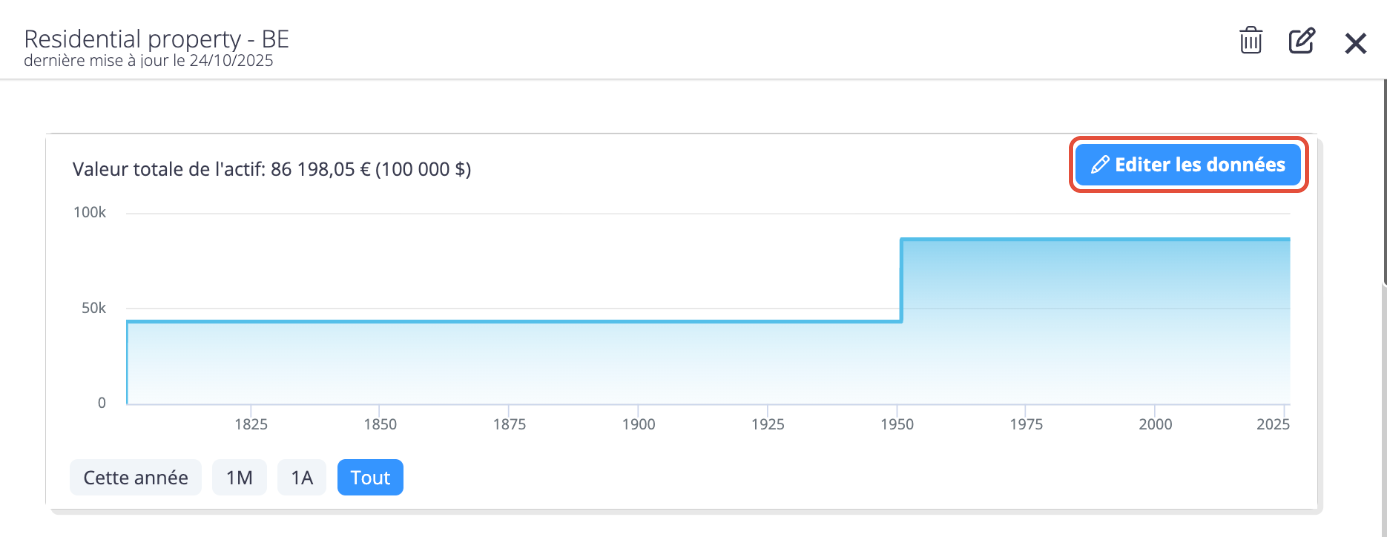 Si vous modifiez le graphique de propriété dans la fiche détaillée de l'actif, un point de donnée sera ajouté à l'historique.