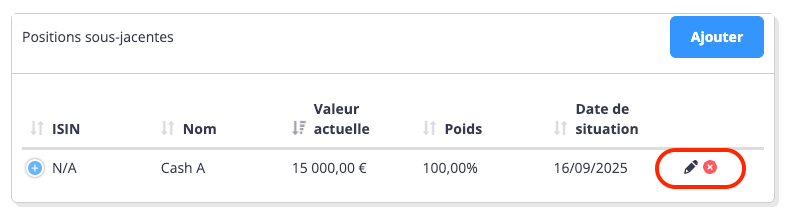 Pour modifier une position sous-jacente: cliquez sur l’icône crayon à côté de la position et mettez à jour les données.