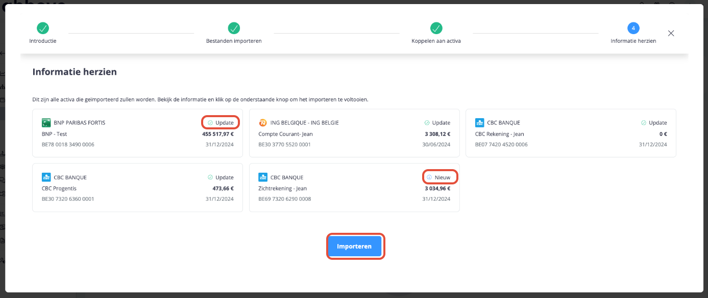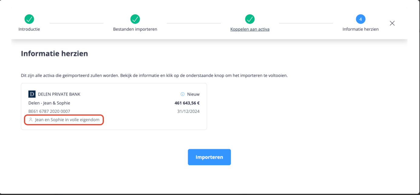 Na voltooiing van de import wordt u teruggeleid naar het vermogensoverzicht.
