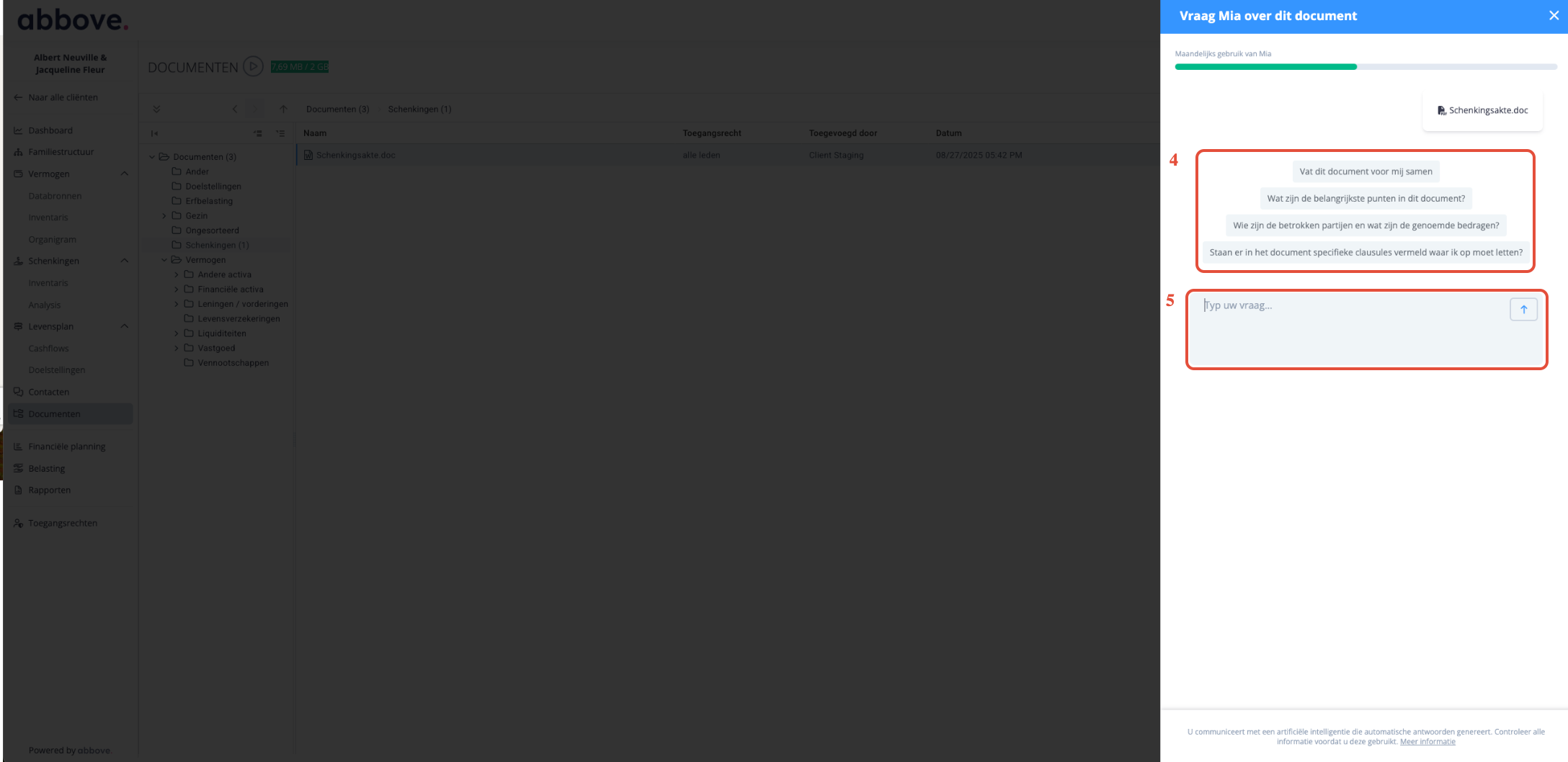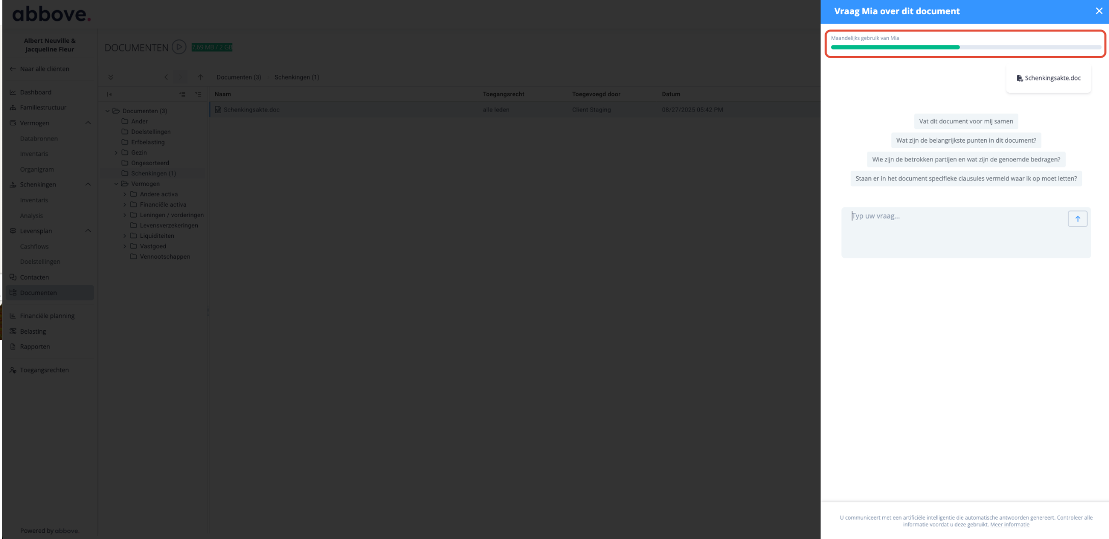 Abbove stelt u nu in staat om gebruik te maken van artificiële intelligentie (AI) om documenten rechtstreeks vanuit de digitale kluis te analyseren.