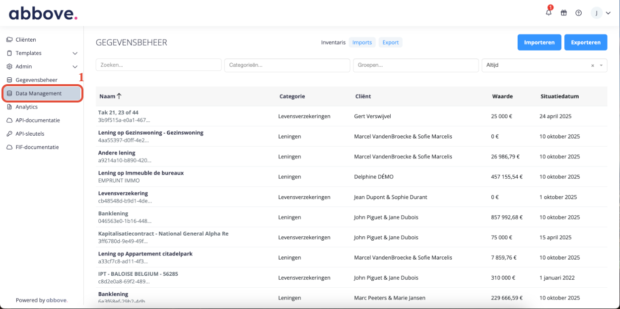 Opmerking: U moet over de permissie Databeheerder (import & export) beschikken om toegang te krijgen tot deze pagina.