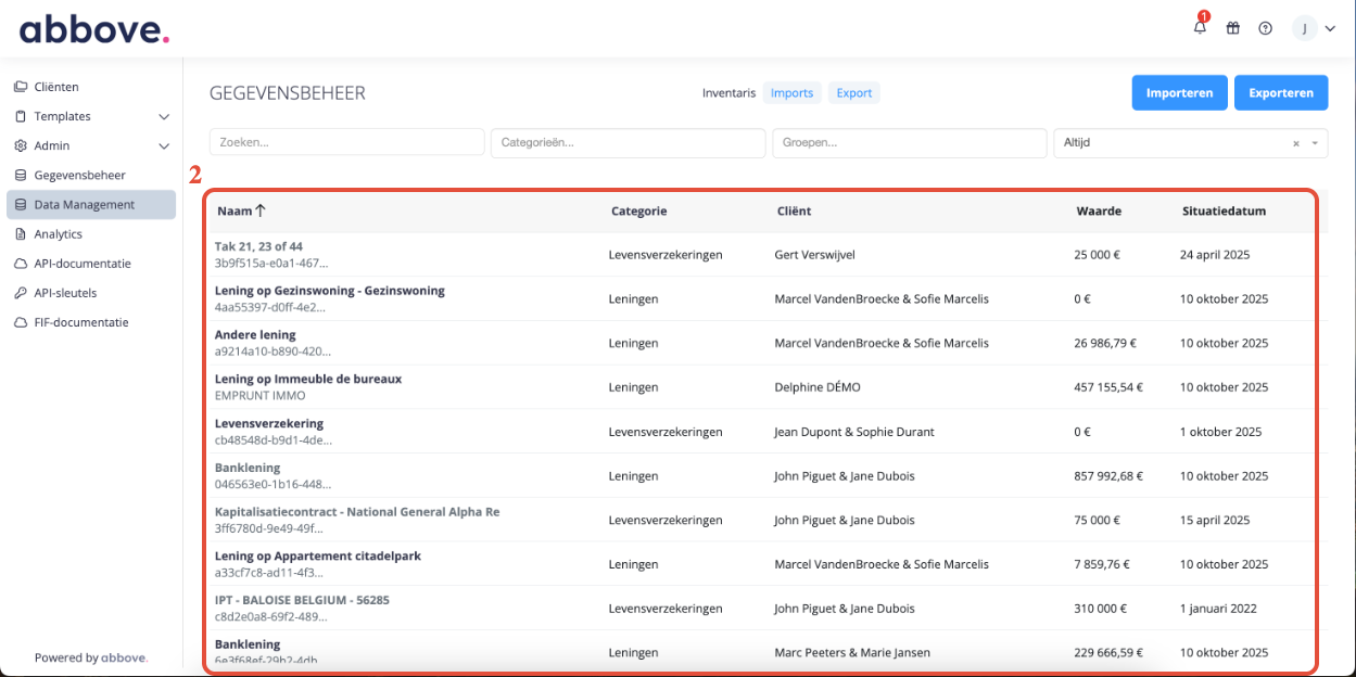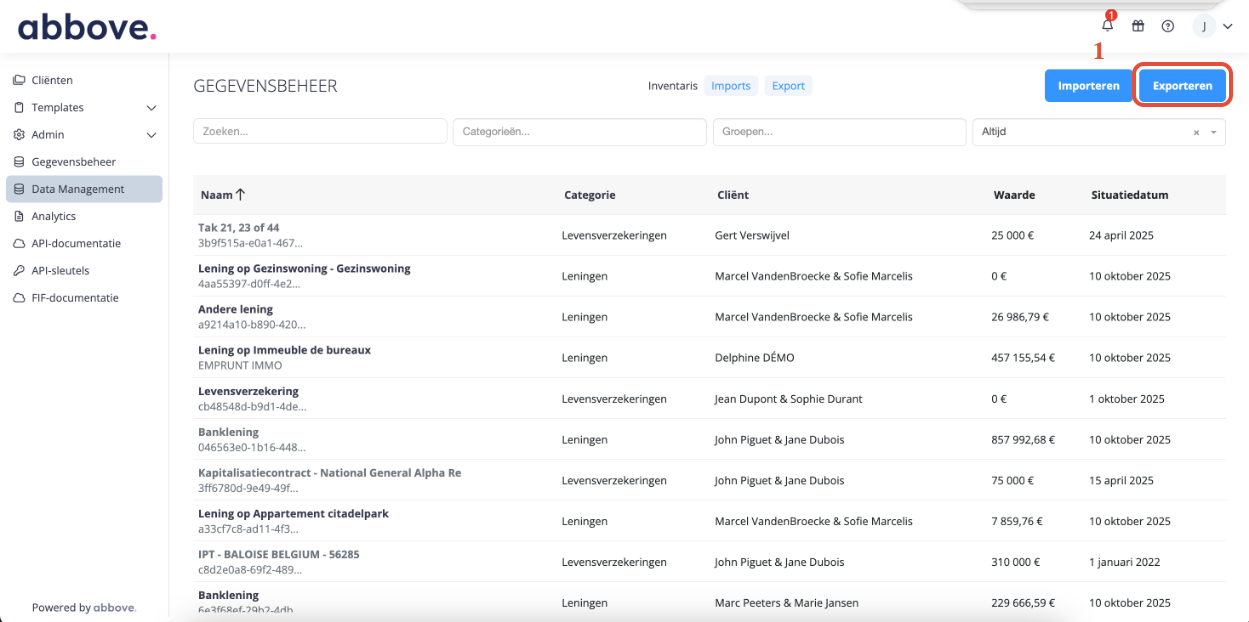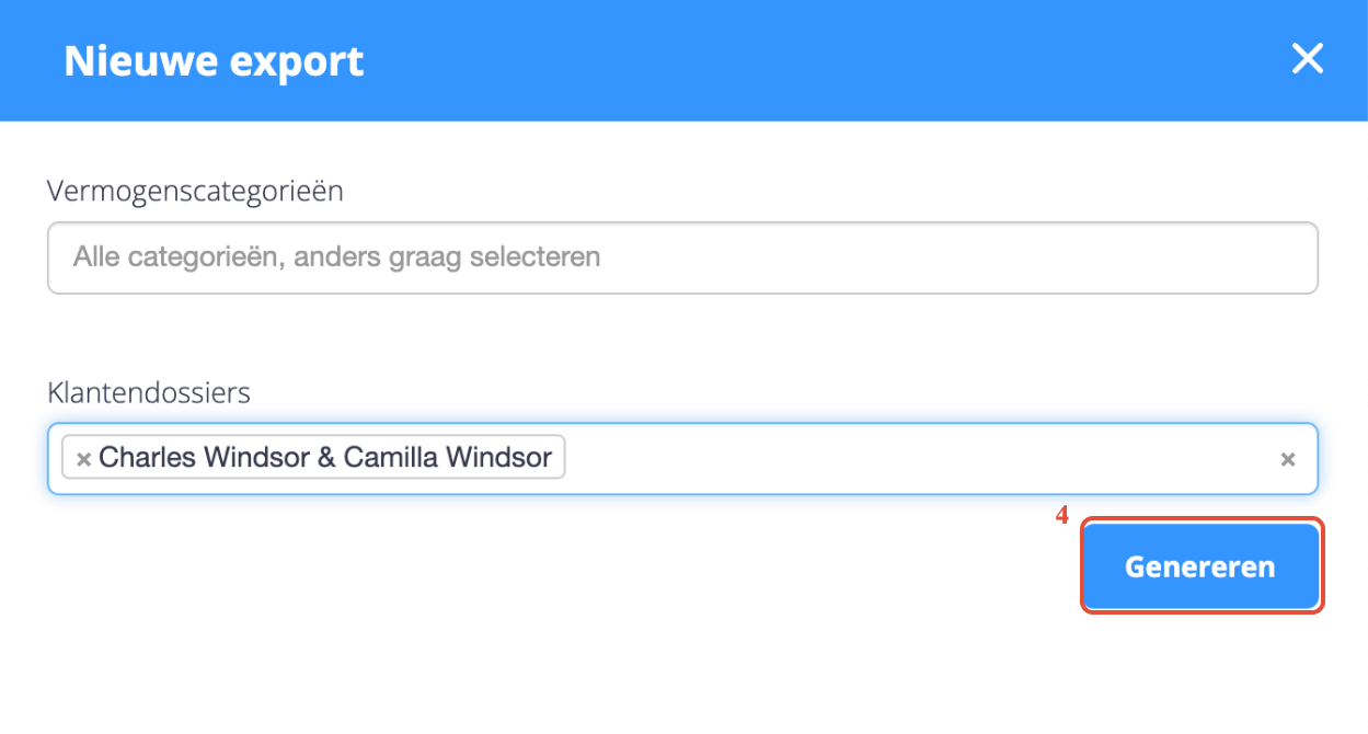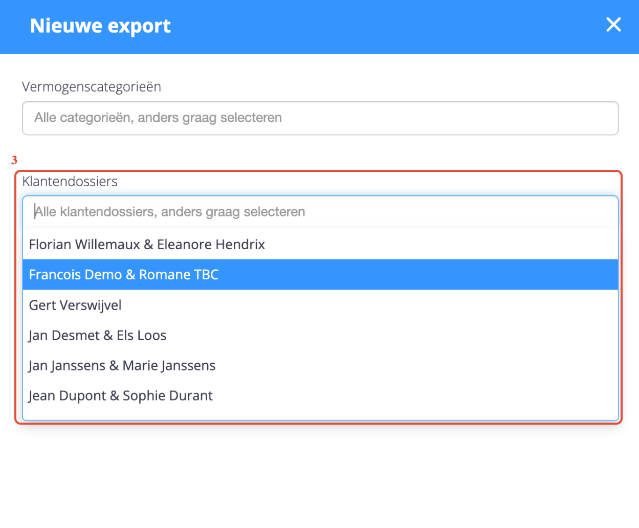 Als u enkel bepaalde klantendossiers wilt exporteren, selecteer deze dan in het menu.
