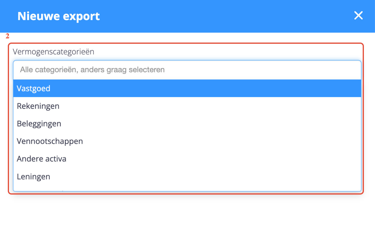 Als u slechts bepaalde categorieën wilt exporteren, selecteer deze dan in het menu.