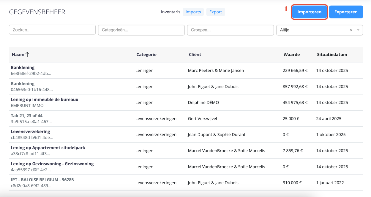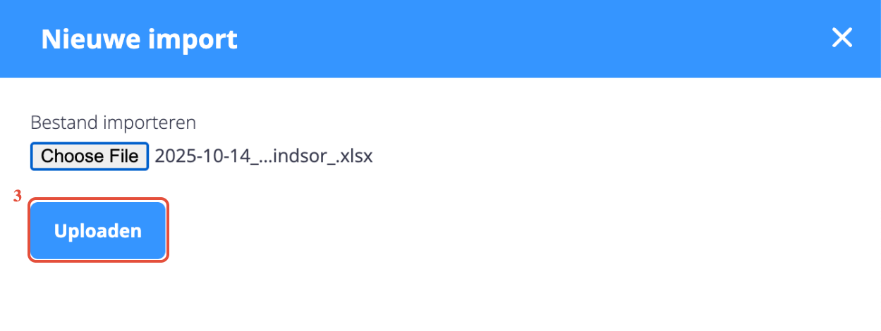 Let op: Als sommige regels wel zijn verwerkt en andere niet, wordt aangeraden een nieuwe export uit te voeren om een bijgewerkte versie te verkrijgen. Corrigeer de foutregels in dit nieuwe bestand en importeer enkel deze opnieuw.