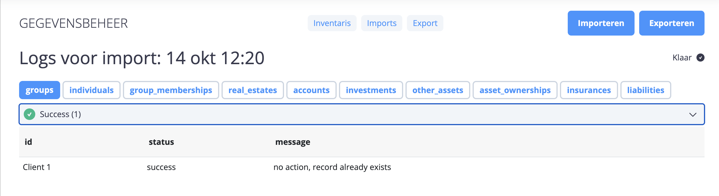 (6) De importlog geeft per regel aan of de bewerking geslaagd is of niet.